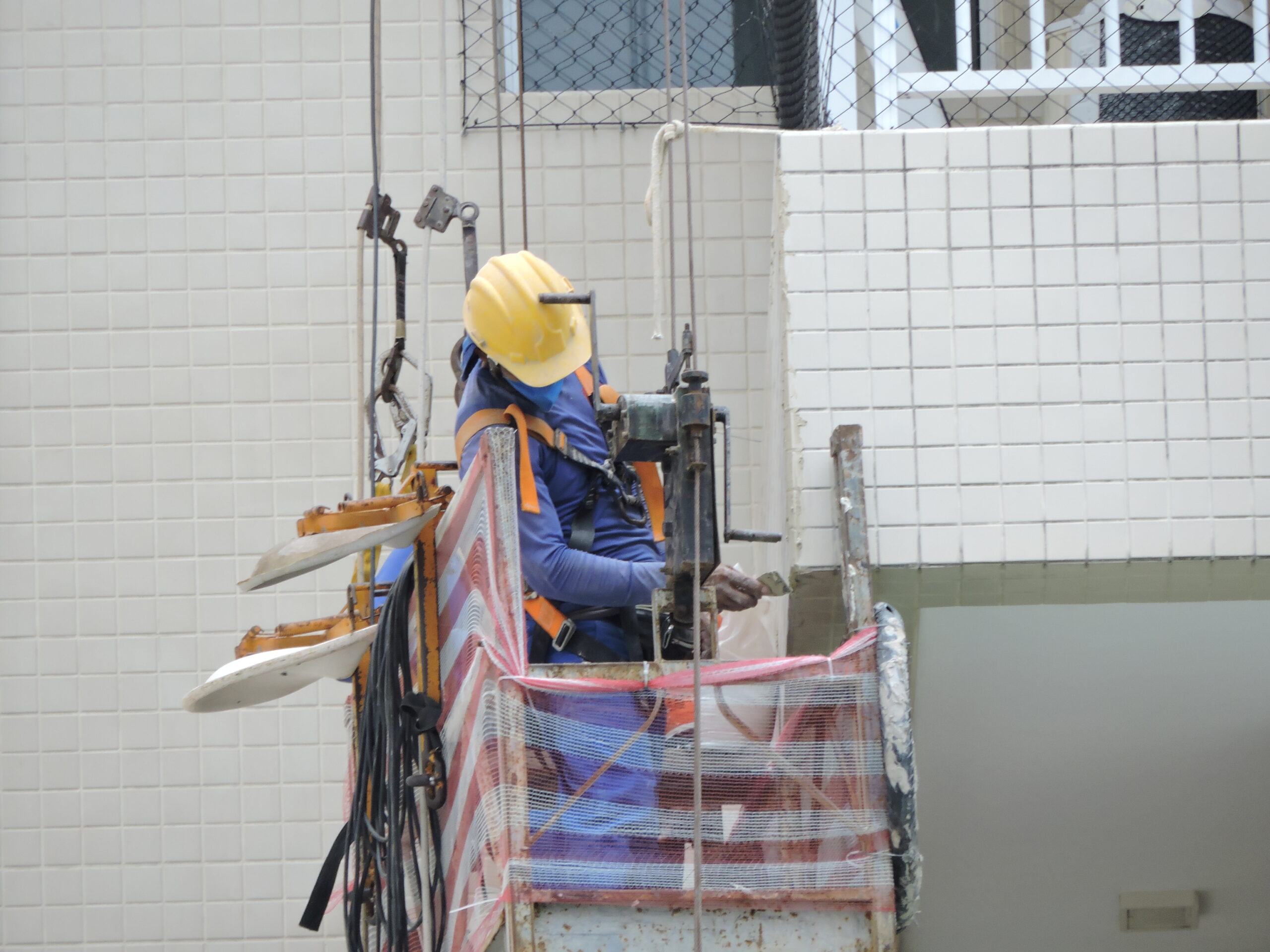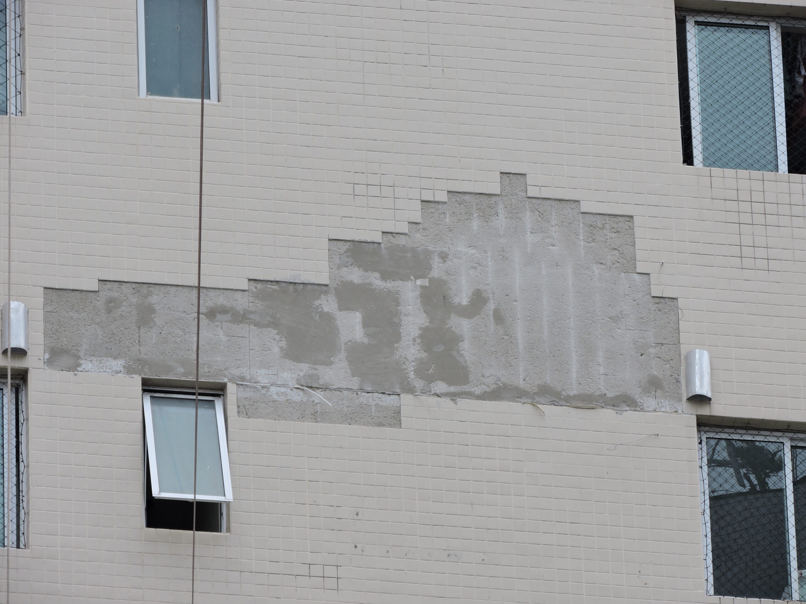 No que concerne a obra de revitalização parcial, a WE Engenharia realizou os seguinte tratamentos: retirada e substituição do revestimento cerâmico nos pontos danificados; remoção de emboço com falhas e execução de novo emboço e revestimento conforme a NBR 13.755; substituição de selantes deteriorados nas juntas de dilatação; revisão e reaplicação de rejuntes nas áreas com falhas; troca de cerâmicas soltas, danificadas ou comprometidas, com novo rejuntamento; remoção de ganchos causadores de danos e cerâmicas afetadas, seguidos de novo revestimento, rejuntamento e instalação adequada dos ganchos; vedação dos ganchos com selante de silicone e aplicação de selante de poliuretano entre a cornija e o revestimento da fachada.